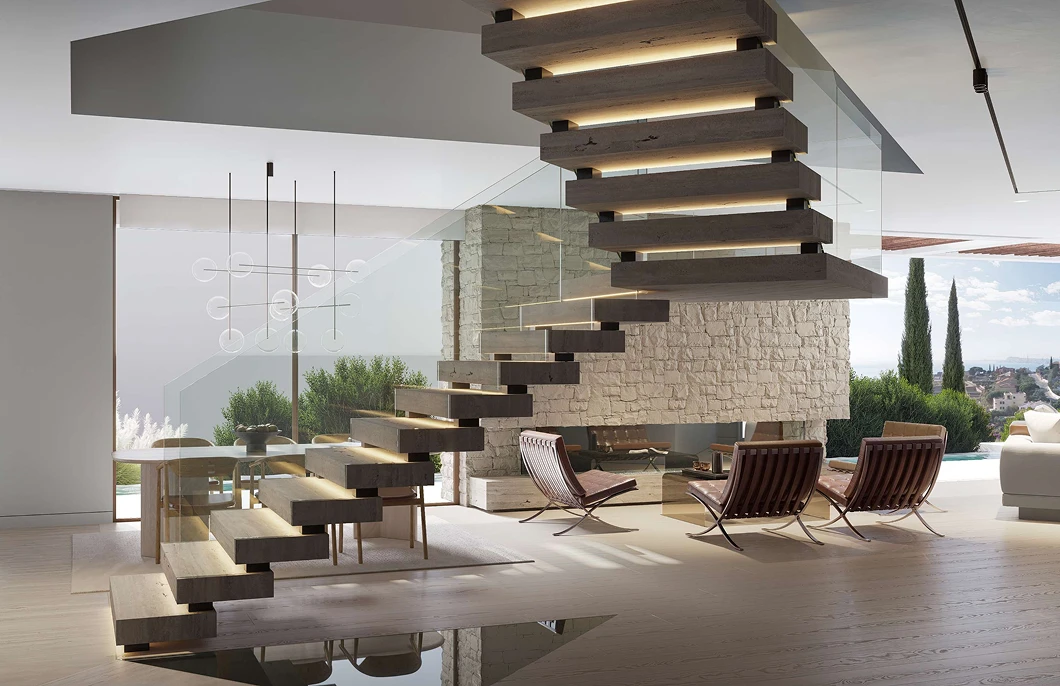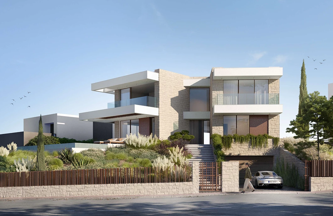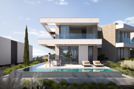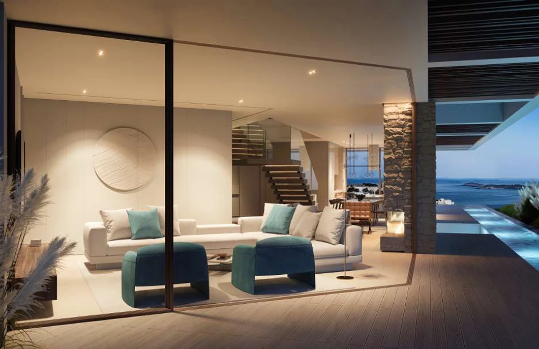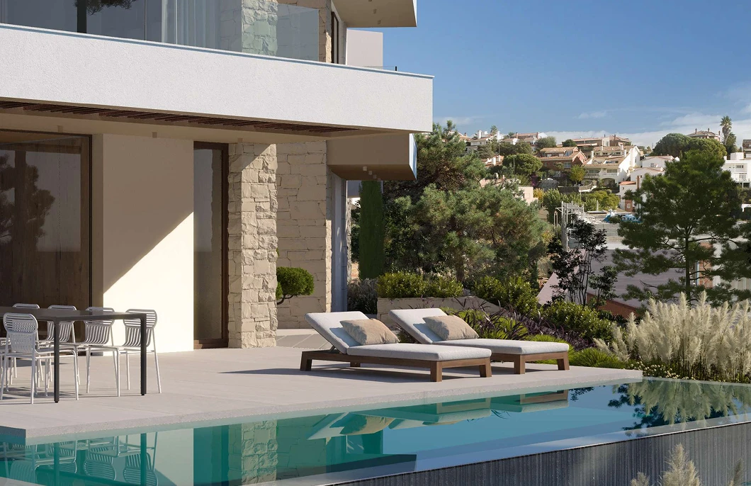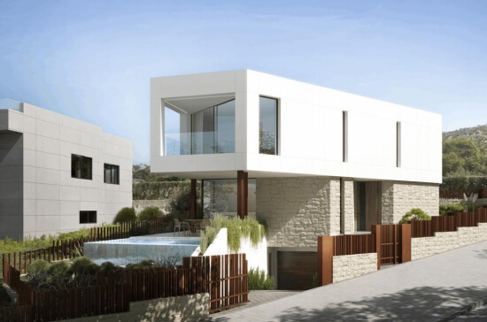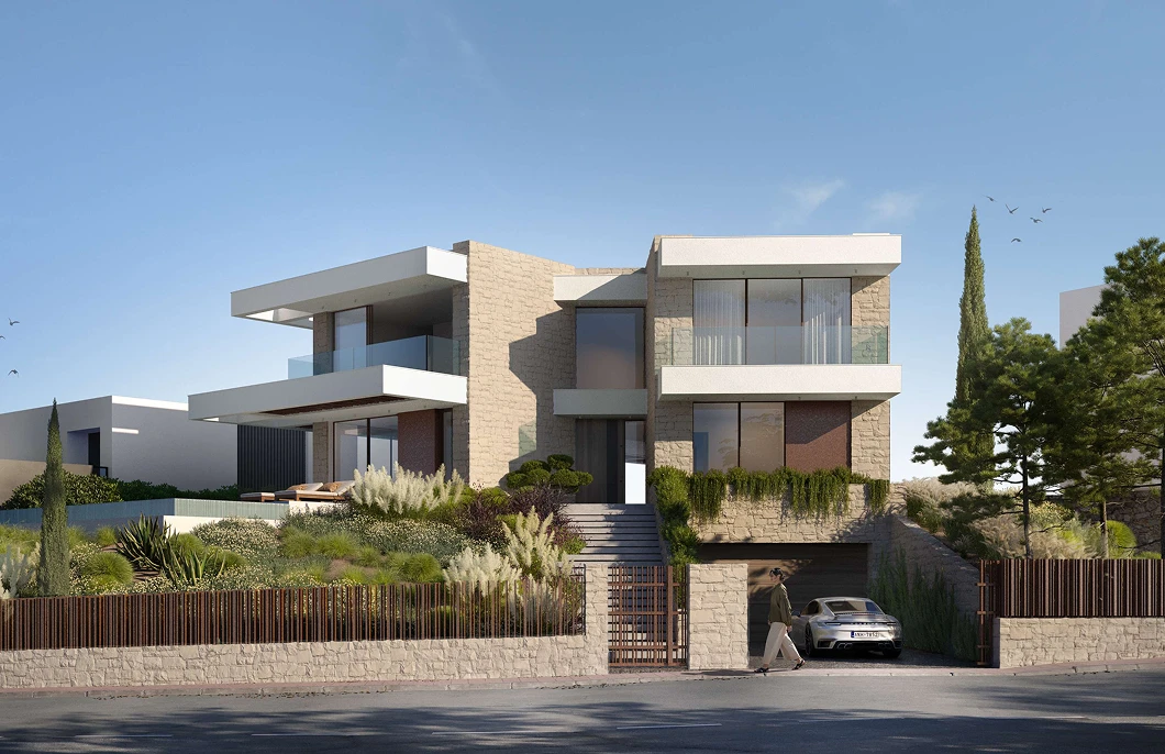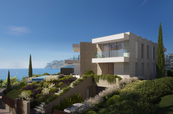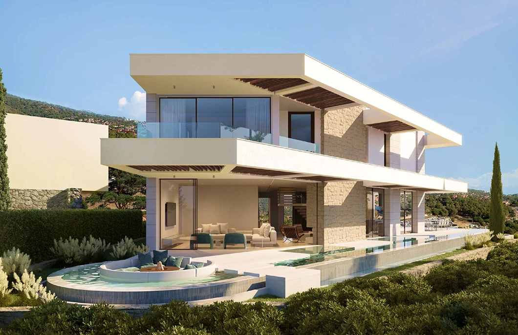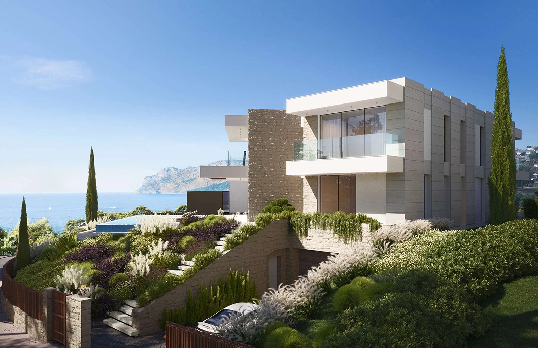 Mediterranean minimalist style, located in a prestigious urbanization in a picturesque setting. Impressive views o the mountain and the Mediterranean Sea irom its windows.