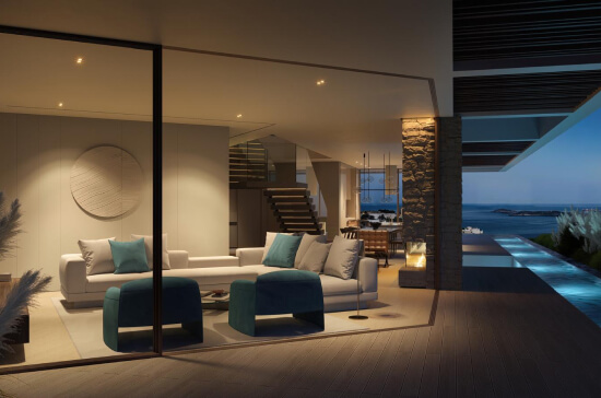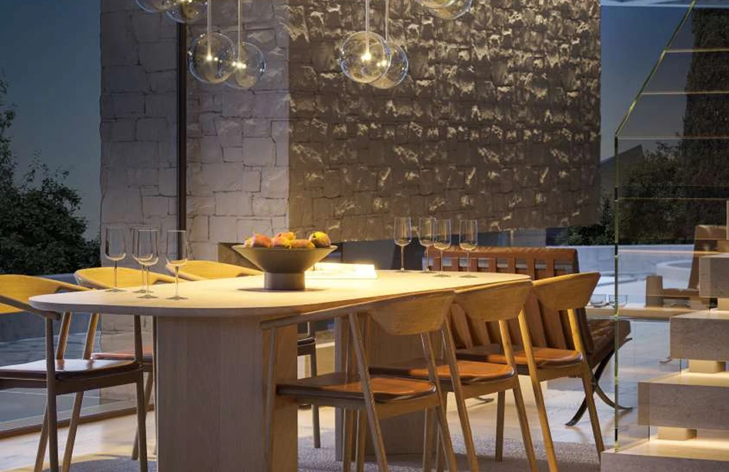 Fascinating house and garden lighting enhances the ambiance, creating a captivating atmosphere both indoors and outdoors.