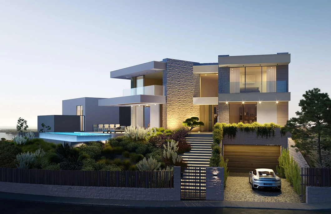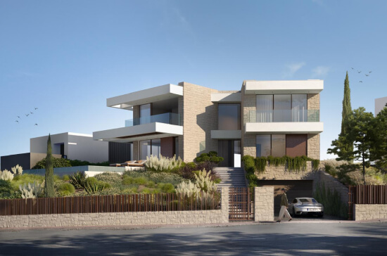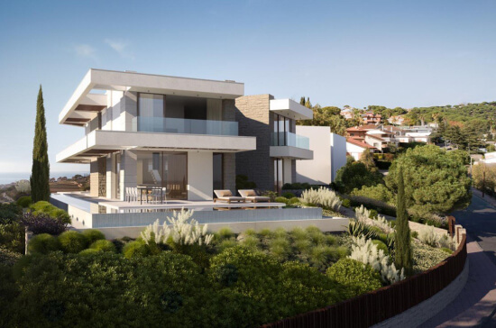 Our project is located in one of the prestigious suburban areas of Barcelona on its north coast. A three-story villa designed in a modern minimalistic style literally soars above the sea, surrounded by picturesque mountains. Beautiful and elevated. Like a dream.
