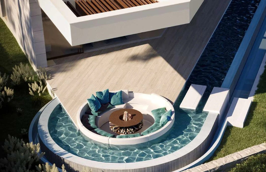 A stylish infinity pool with a 25-meter water depth seamlessly blends into the horizon, offering unmatched views and a luxurious swimming experience.